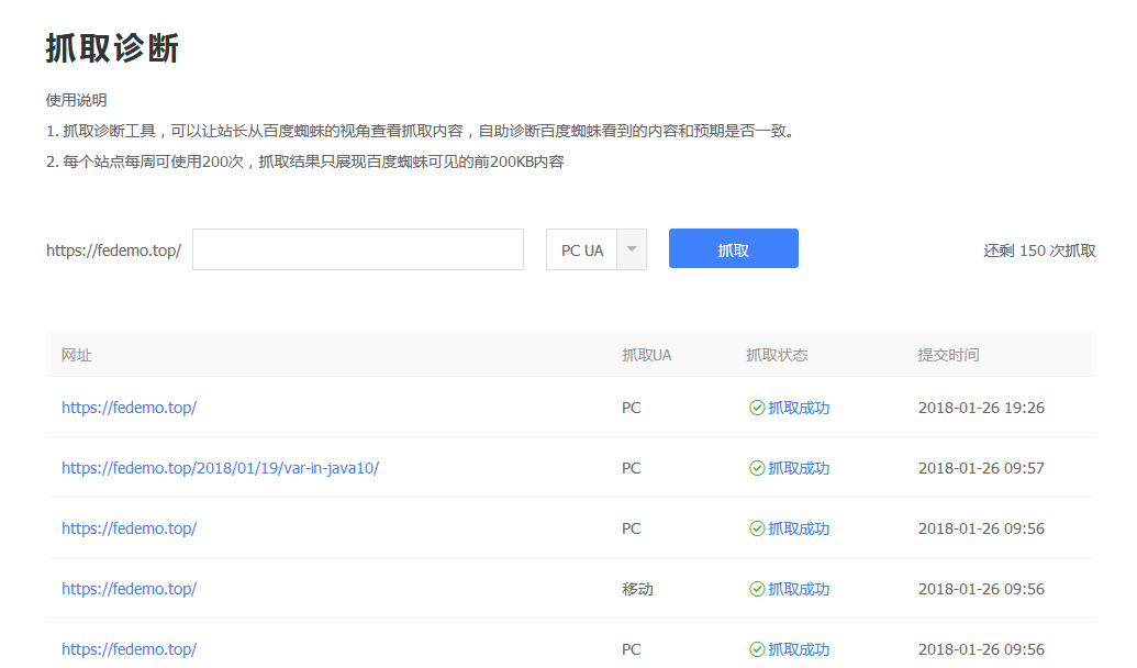 百度站长工具抓取诊断结果
